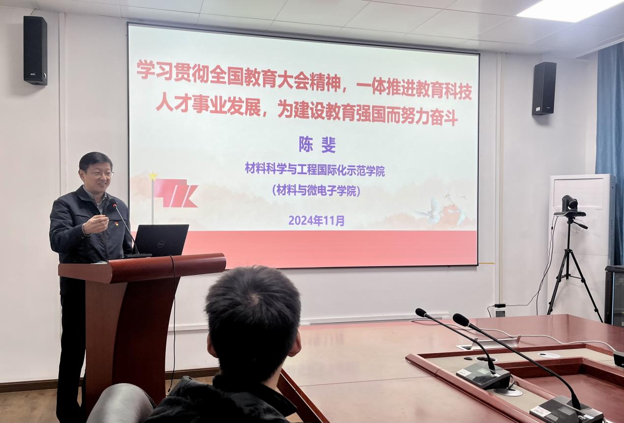 11月25日上午,公司副经理陈斐教授以“学习贯彻全国教育大会精神,一体推进教育科技人才事业发展,为建设教育强国而努力奋斗”为主题,从新时代我国科技事业取得的历史性成就、科技创新在教育和人才事业发展中的动力源作用和如何更好发挥科技在教育和人才事业中的动力源作用三个方面为功能梯度材料研究生党支部带来了一堂生动的专题党课。