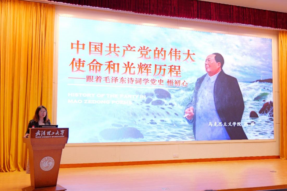 培训第四讲,马克思主义公司副教授冯蓓以毛泽东诗词为线索,带领学员们回顾中国共产党在各个历史时期的使命和实践、所取得的成就和积累的经验,全面展现党的奋斗历程和伟大精神。她将诗词赏析与中共党史有机融合,既彰显了毛泽东诗词的文学魅力,又深刻阐释了中国共产党人的理想信念和奋斗精神,引导同学们从文学视角感悟党的初心使命。