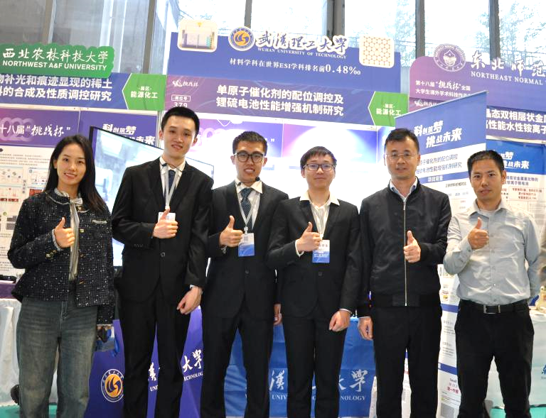 From October 27th to 31st, the 18th Challenge Cup National College Students' Extracurricular Academic Science and Technology Works Contest was successfully held in Guizhou University. A total of 1,745 works were recommended in this competition. After the preliminary round, 690 works from 344 Universities in Mainland of China and 23 works from 9 universities in Hong Kong and Macao regions of China were shortlisted for the final review. The project of our school entitled Research on the coordination control of single-atom catalysts and the performance enhancement mechanism of lithium-sulfur batteries finally won the first national prize (The instructors are Xu Xu, Kou Zongkui, Yan Mengyu. The students are Dong Chenxu, Wang Hanxiao, Zhang Xianyang).