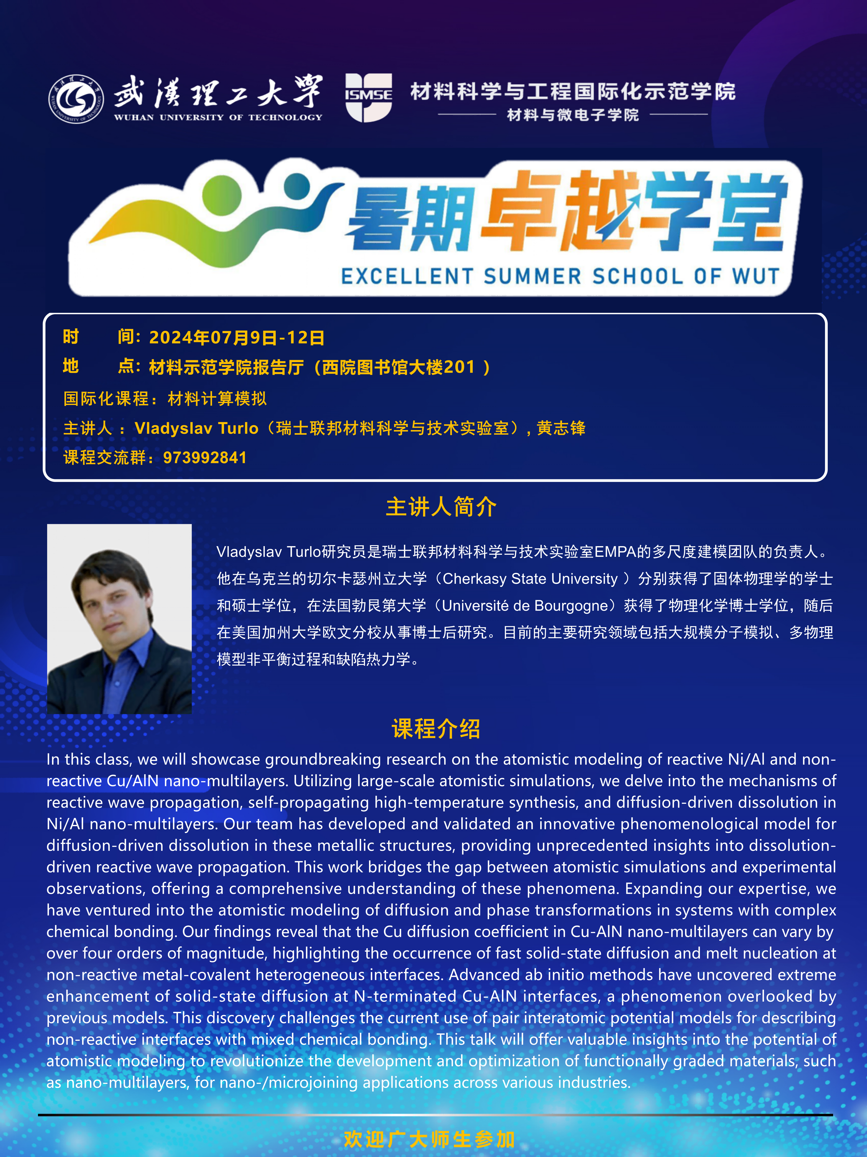【williamhill中文官网暑期卓越学堂】国际化课程《材料计算模拟》