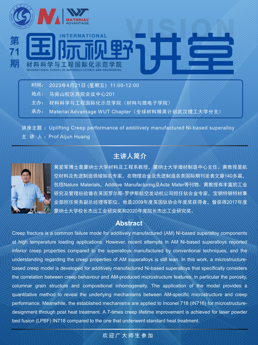 【国际视野讲堂】第71期:蒙纳士大学黄爱军教授学术报告会