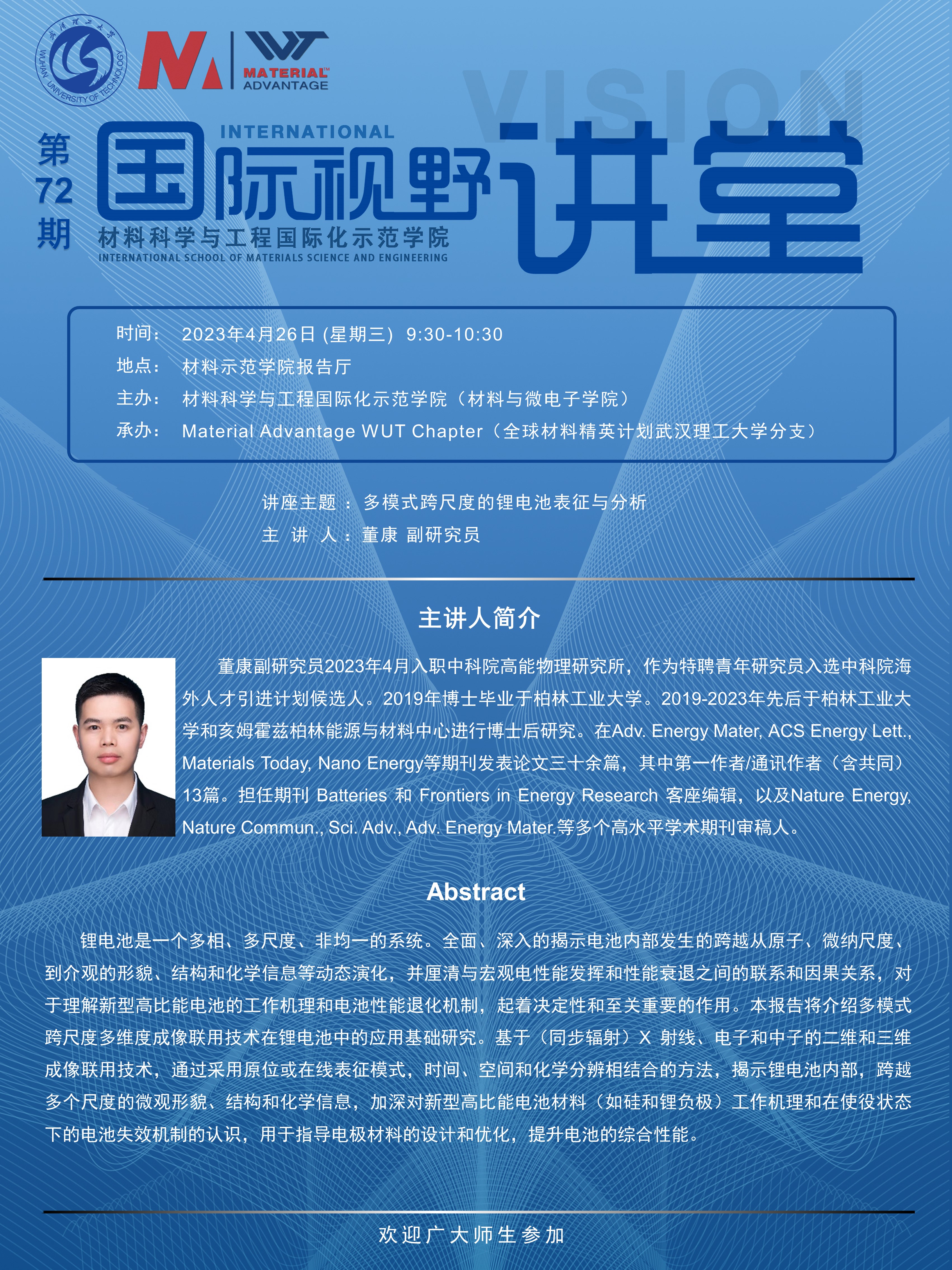 【国际视野讲堂】第72期:中科院董康副研究员学术报告会