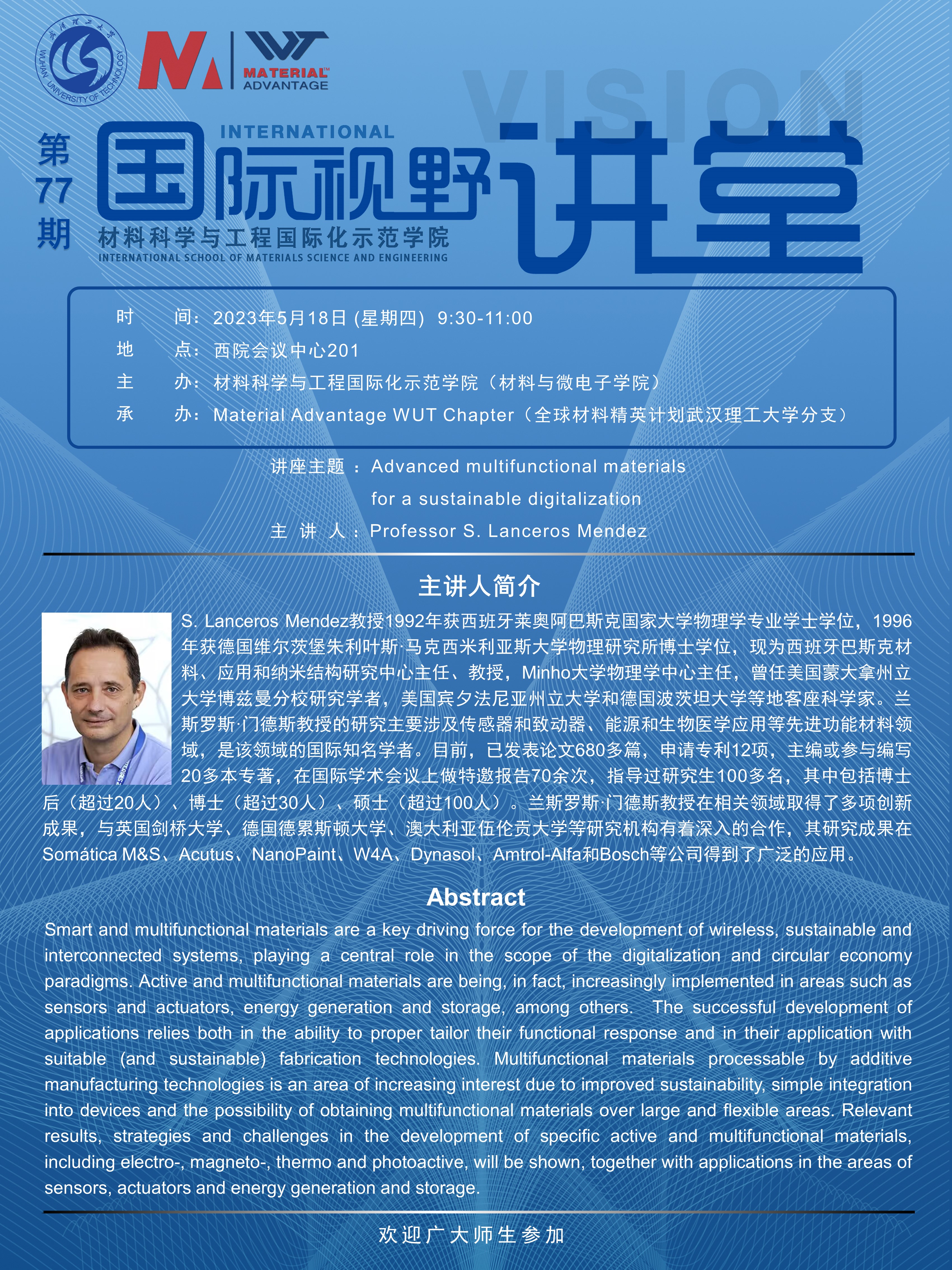 【国际视野讲堂】第77期:S. Lanceros Mendez 教授学术报告会