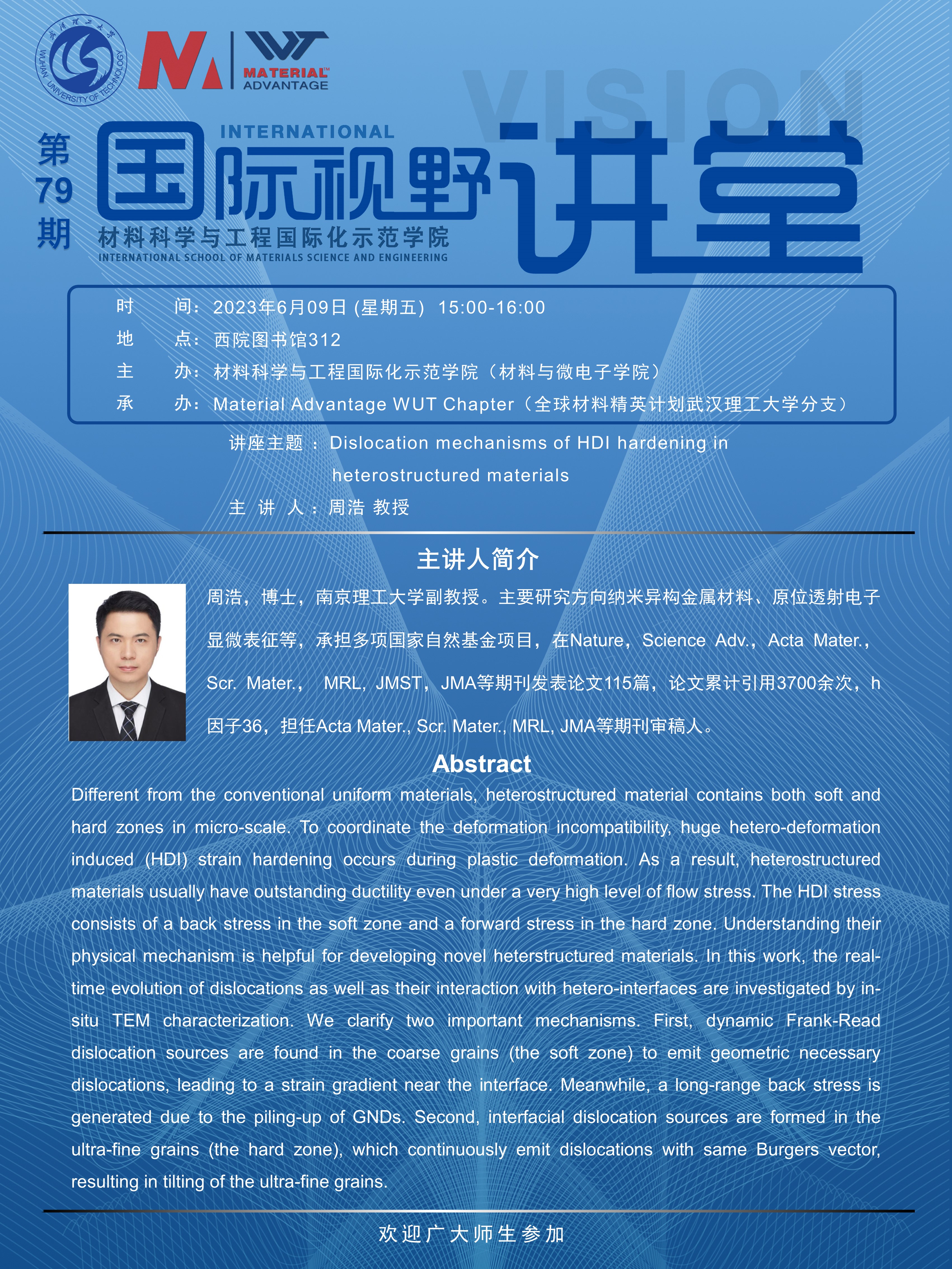 【国际视野讲堂】第79期:南京理工大学周浩副教授学术报告会