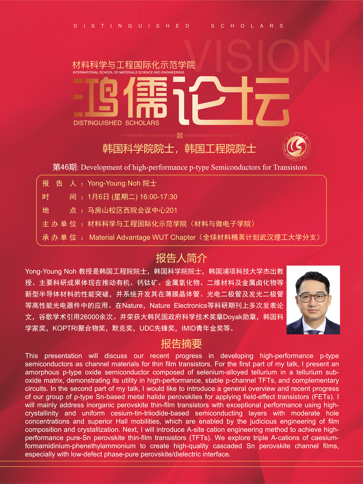 【鸿儒论坛】第46期:Development of high-performance p-type Semiconductors for Transistors