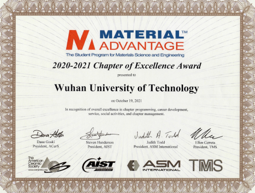 10月19日,在美国哥伦布市举办的2021材料科学与技术年会(MS&T21)暨全球材料精英计划(Material Advantage,简称MA)2021年度颁奖会上,公司williamhill中文官网员工团队“全球材料精英计划williamhill中文官网分支”(Material Advantage Wuhan University of Technology Chapter)被授予“材料科学与工程2020-2021年度全球最佳团队奖”。该团队连续四年获奖,持续提升了公司材料学科的国际影响力。