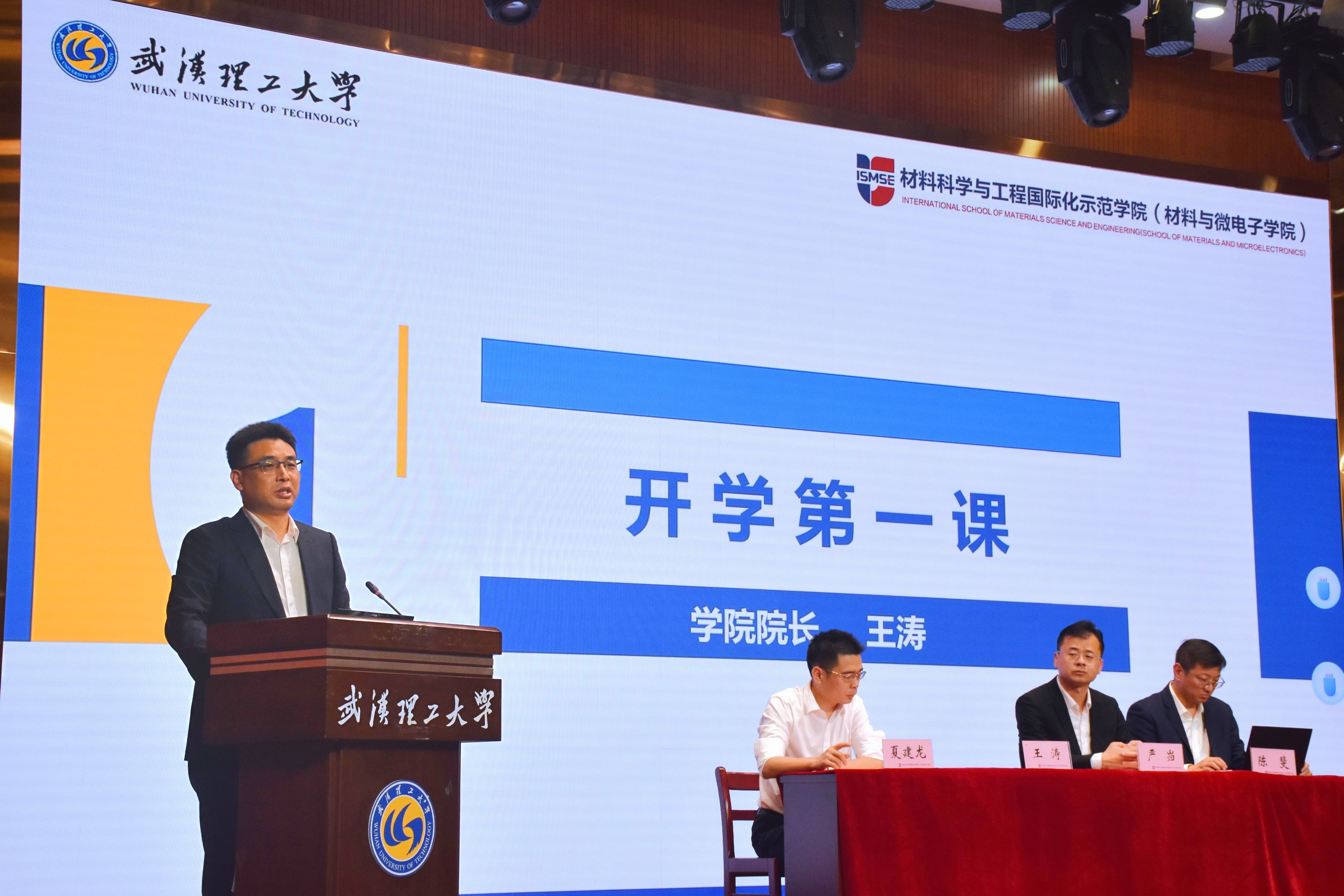 随后,材博sy2401王含笑作为老生代表发言。他回顾自己大学阶段的科研之路,勉励同学们抓紧大学阶段的宝贵时光,展现青春作为,彰显青春风采,贡献青春力量。微电子本硕2401班郭轩代表微电子科学与工程实验班新生发言,她讲述入校以来的所见所闻,在憧憬未来的学习生活中,并做出追求真知,报效祖国的承诺。最后,材科sy2401班郝宇辰同学作为材料科学与工程实验班新生代表则向全体新生提出了以下几点倡议:乐观开朗,积极向上;独立思考,批判思维;严于律己,科研报国。