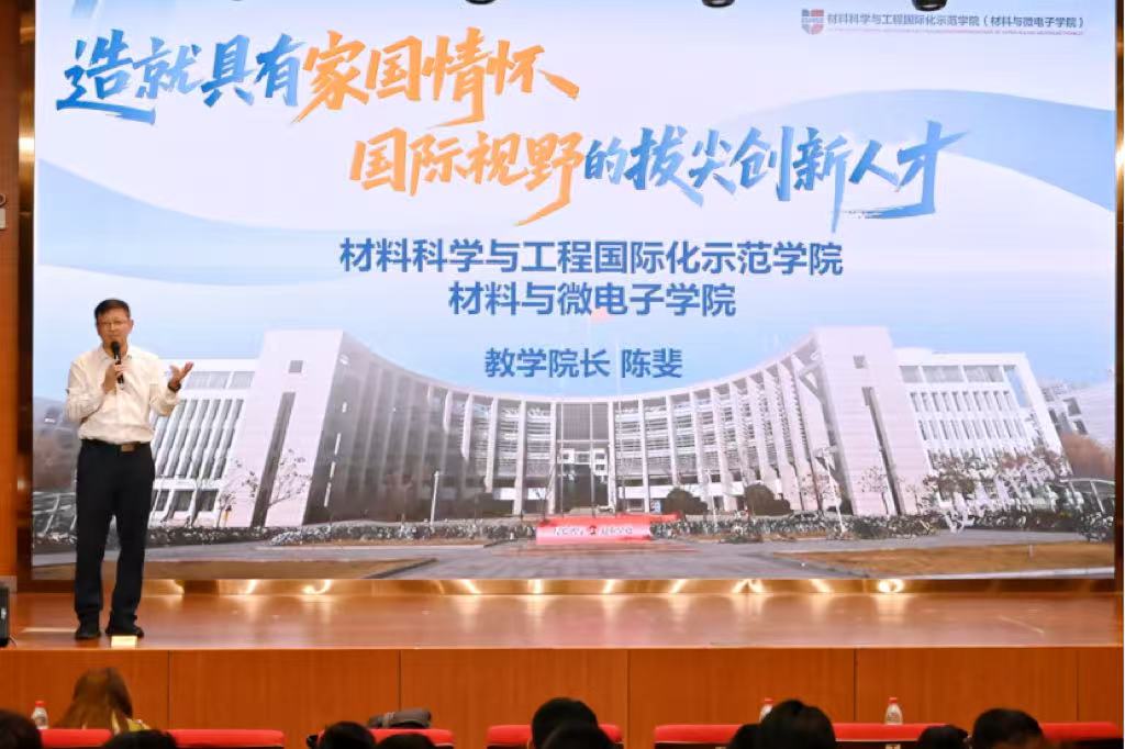 随后,在校生代表材科sy2202蔡子翾同学回顾自己的学习科研经历,激励同学们脚踏实地,夯实基础,大胆创新,为实现科技强国而不懈奋斗。微电子英才2501班郭梦然同学代表微电子专业同学表达了刻苦学习、开拓创新、报效祖国的决心和毅力。材科鲲鹏2501班徐子奕同学代表材料科学与工程专业同学发言,他承诺将牢记责任与使命,不断汲取知识,为实现中国梦贡献材料力量。