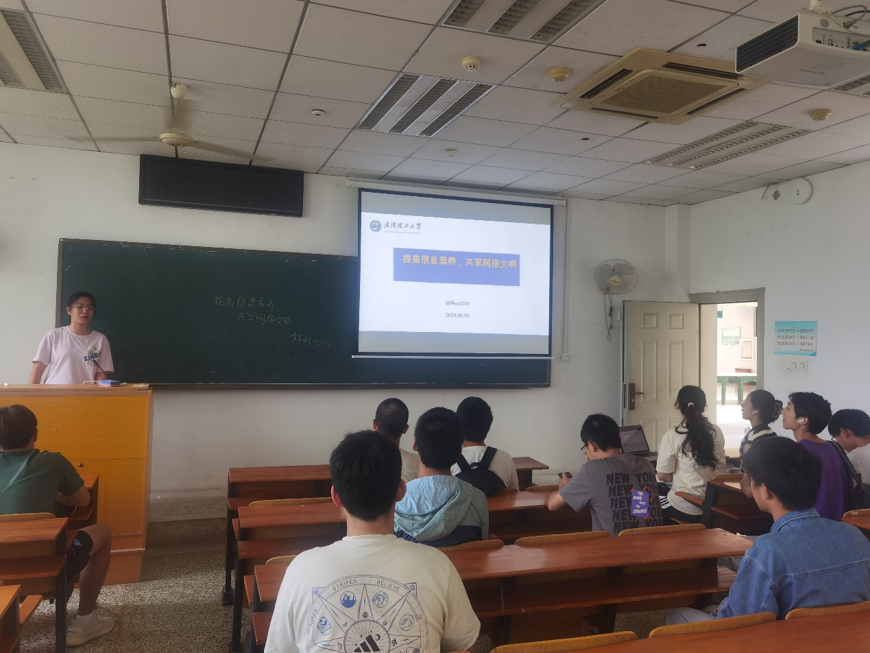 2023年6月14日——材科sy2201班于南湖校区博学西楼312教室举办了“提升信息素养、共享网络文明”主题班会,本次班会由班主任邹朝勇老师主持,材科sy2201班全体同学参加。