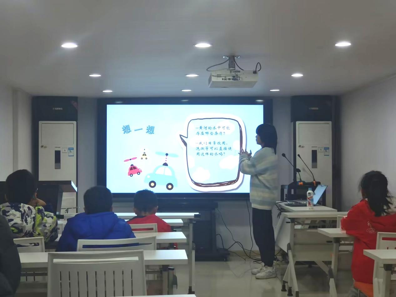 “同学们,你们知道我们国家的母亲河是哪条吗?”主讲老师王文若首先向同学们提问。“黄河!”“那黄河又有哪些特点呢?”“弯曲!黄!”……同学们七嘴八舌的同时聚精会神,对接下来的内容充满了兴趣。