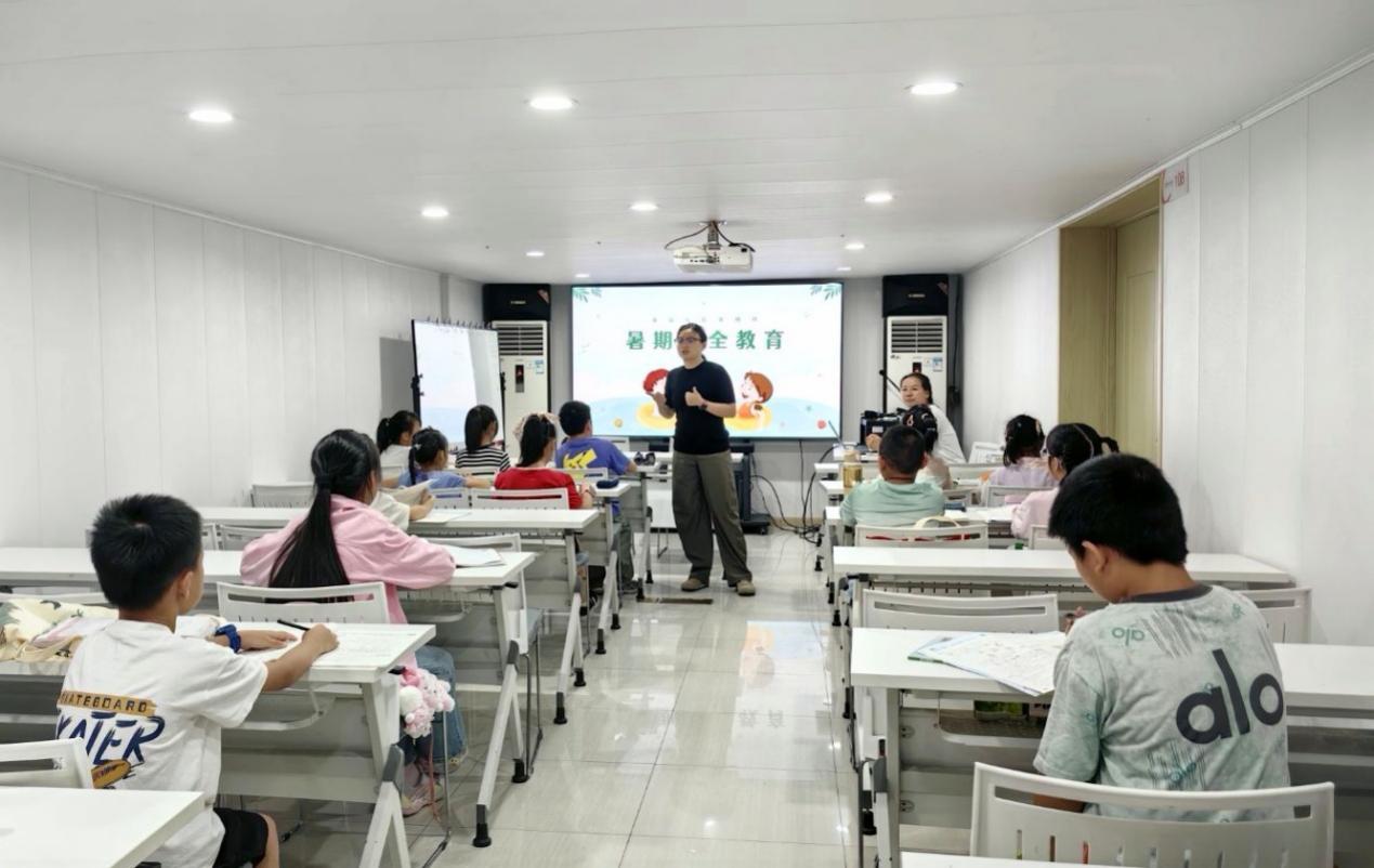 除了作业辅导,五天的托管活动中还穿插了丰富的特色课程。7月7日上午,活动以一节安全教育课拉开序幕。队员们与孩子们共同学习暑期安全知识,重点围绕防溺水——从溺水的危害到自救互救的正确方法开展教学,社区老师结合案例进行细致的讲解,确保每个孩子都能牢记“不私自下水”“遇险情及时呼救”等要点,为孩子们的暑期安全筑起一道思想防线。