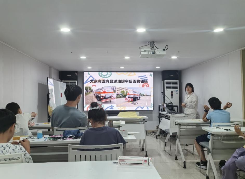 实验结束后,丁老师通过实物展示和互动问答,为孩子们讲解静电的应用价值,并介绍静电可能造成的危害,教授防静电技巧,引导孩子们将理论知识运用到实际生活中。