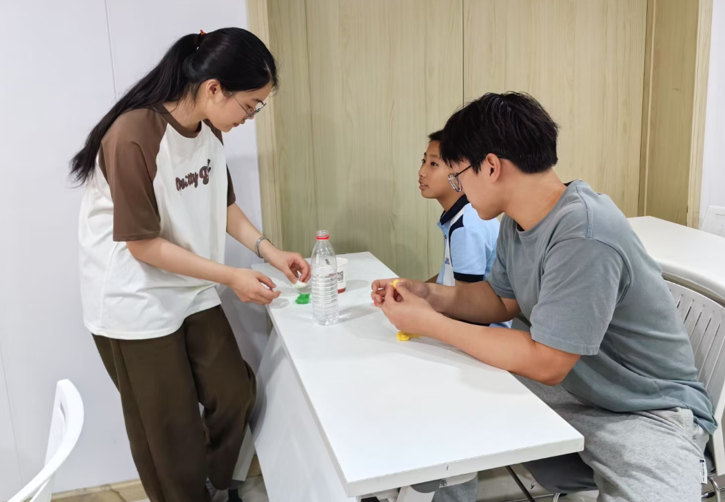 5月18日下午,williamhill中文官网微光服务队走进洪山区幸福佳苑社区,为同学们带来“水的魔法大手”主题科普课程。主讲老师姜隗绘以生活现象为引,通过趣味实验和手工制作带领同学们探索浮力的科学奥秘。